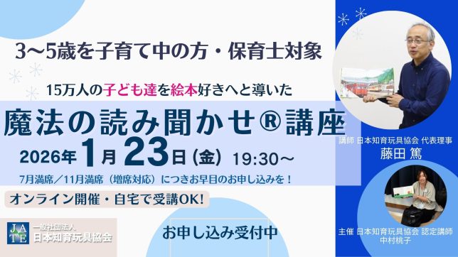★3~5歳対象1/23(金)藤田篤先生による魔法の読み聞かせ講座はこちらです>>