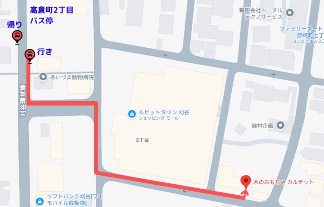 バスの進行方向左側(ちょっと見えづらいですが)にルビットタウン刈谷店があります。
