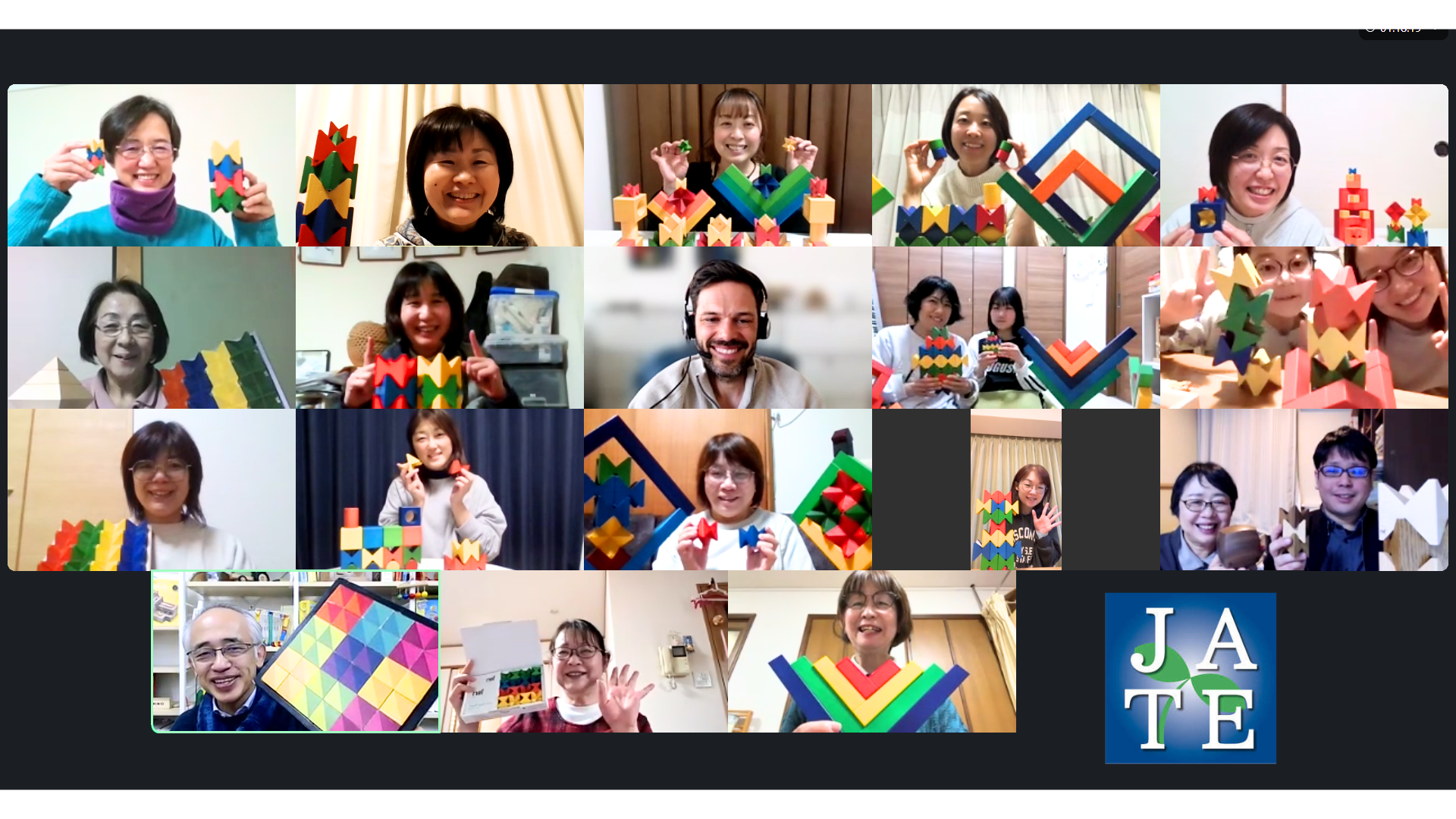 それぞれの画面に美しい積木が映し出され、オンラインの空間が色とりどりのネフで彩られるようでした。