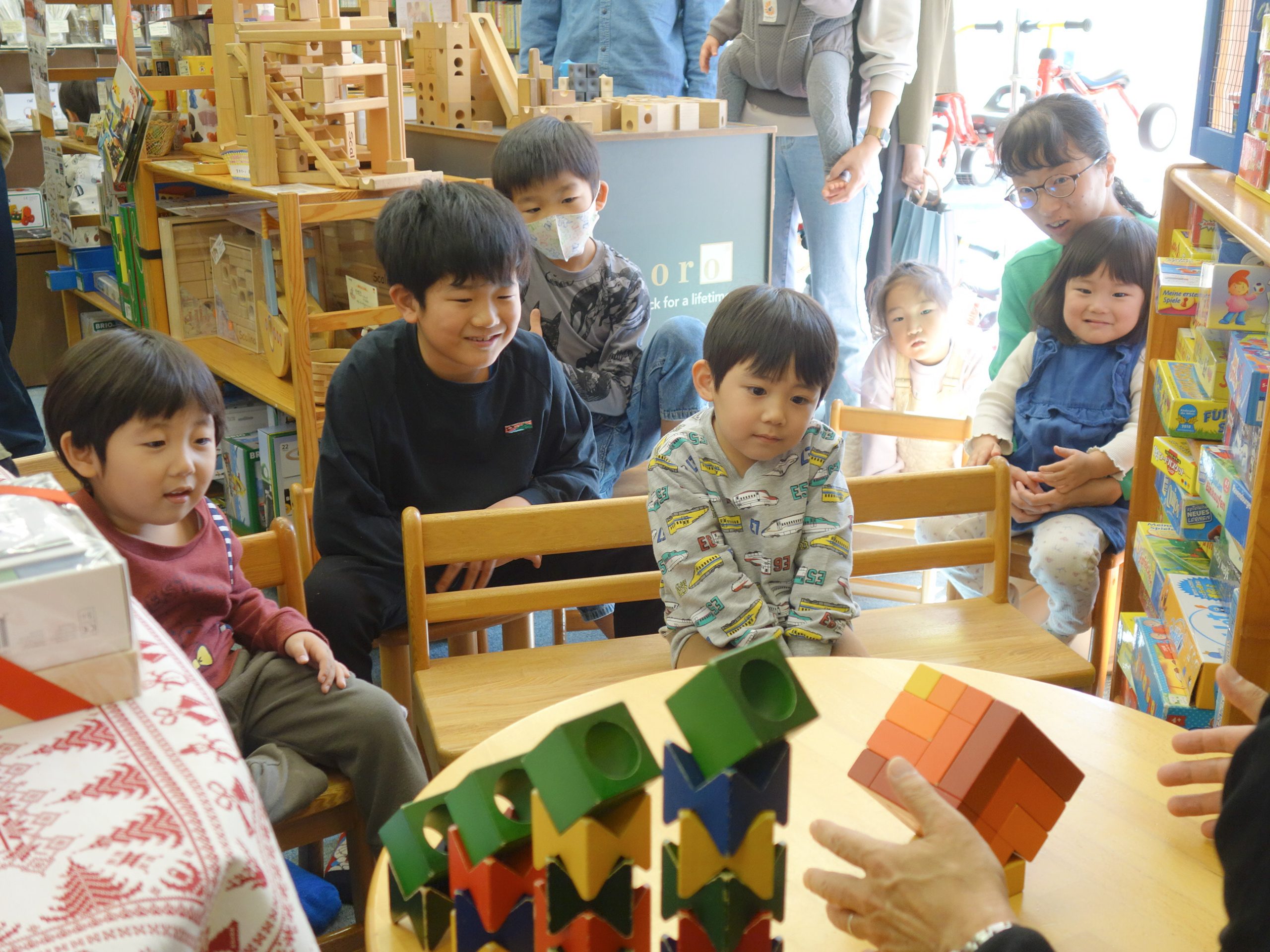 沢山笑って、「わぁ!」っと驚くしかけも盛り沢山の積木ショーでした♪