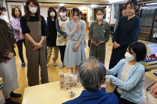 講座では、立体パズルや積木、ボードゲームなど、