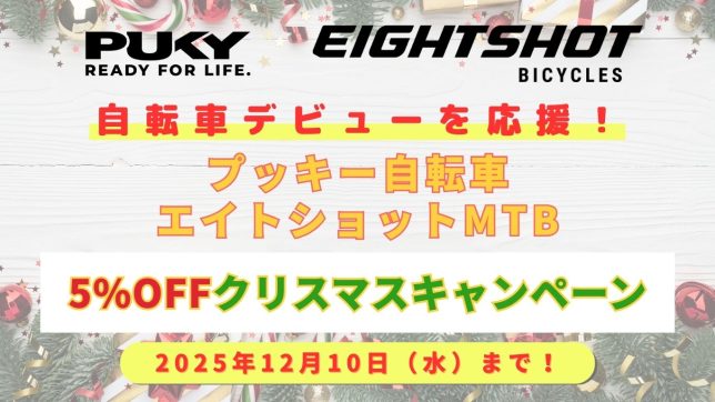【プッキー自転車・エイトショットMTB】5%OFFクリスマスキャンペーン開催!